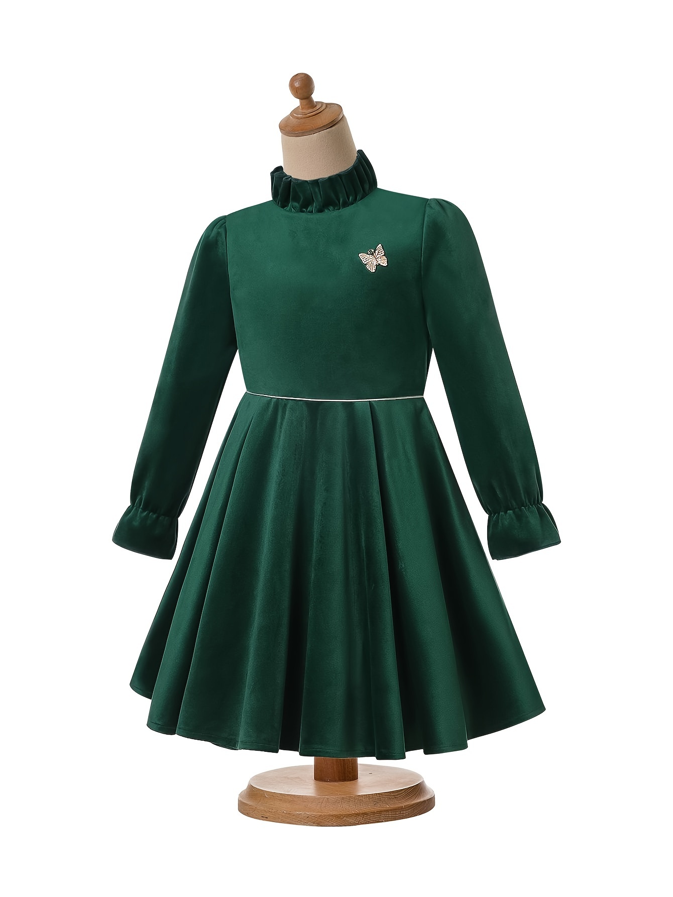 Girl Vintage Christmas Winter Green Long Sleeve Clothing Toddler Kids Elegant Beautiful Festival Midi Dresses