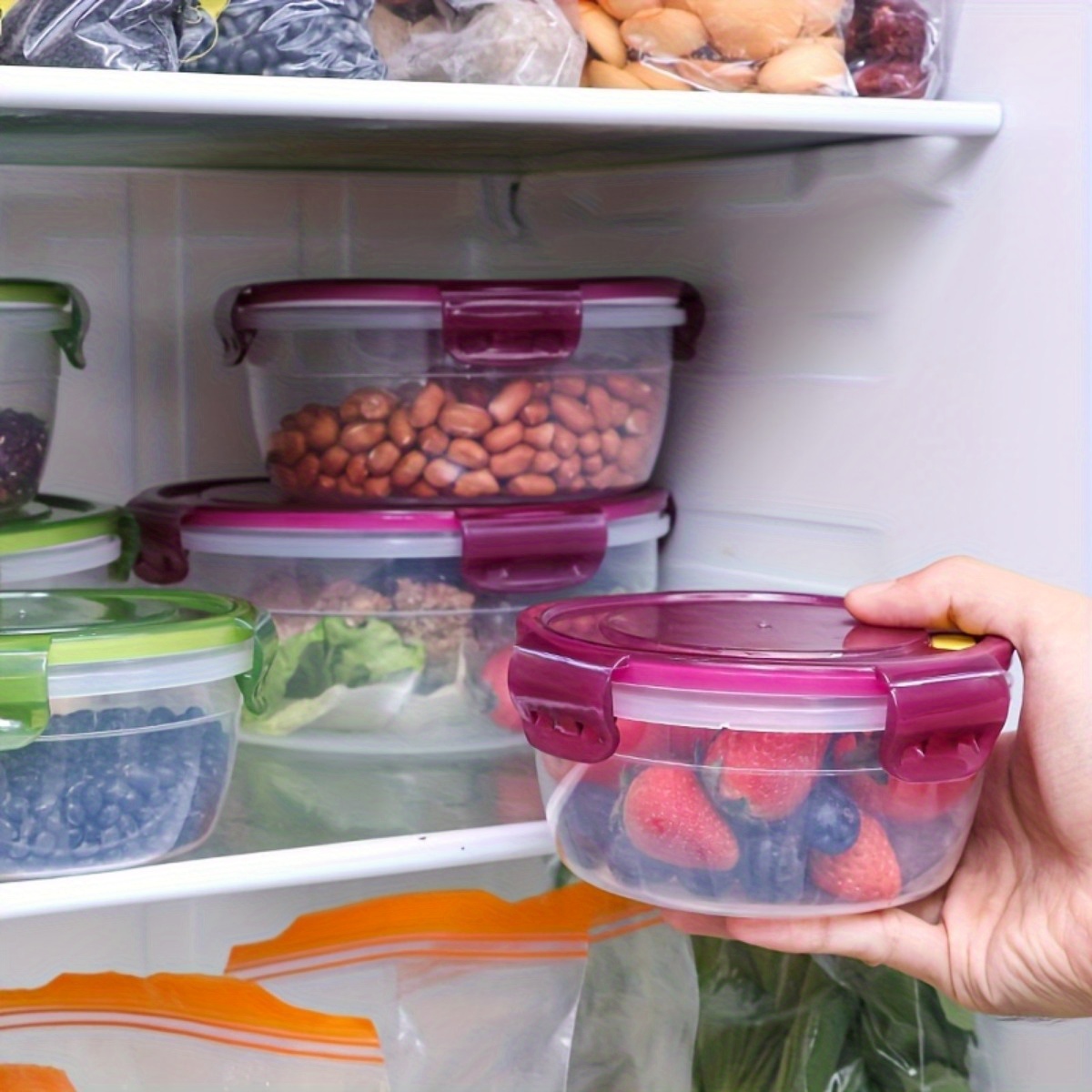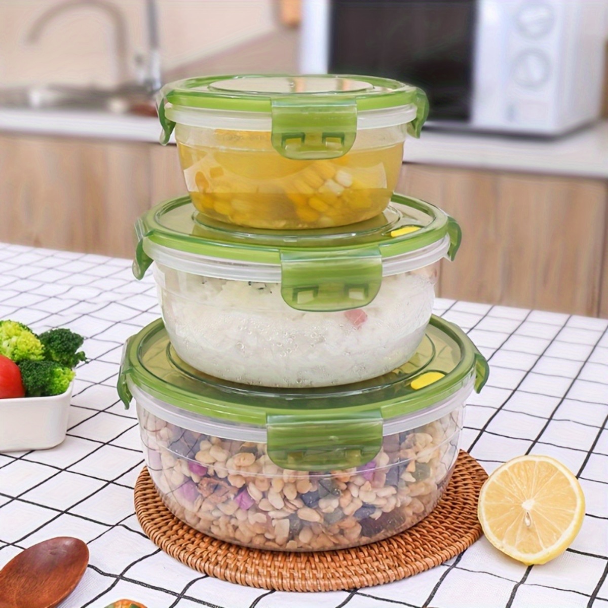 3pcs Household Kitchen Preservation Box, Refrigerator Food Storage Bowl, Microwave Heated Lunch Box, Moisture-proof Grain Storage Box, Kitchen Supplies, Pantry Storage, Meal Prep Containers, Stackable Storage, Airtight Container, Durable Plastic