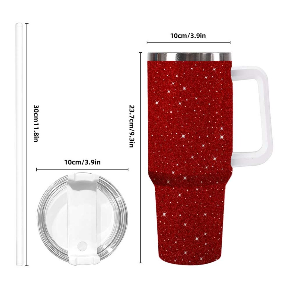 1pc Sparkling Red Glitter Insulated Tumbler | Double Wall Stainless Steel, Includes Straw & Lid, Perfect for Hot & Cold Drinks, Durable Leak-Proof, Easy to Clean, 40OZ Capacity