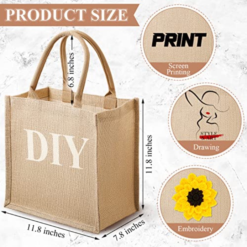 ysyky2 Pcs Burlap Jute Tote Bags with Handle Reusable Blank Bridesmaid Gift Bags for Shopping Wedding DIY 2x2x7.7In Jute
