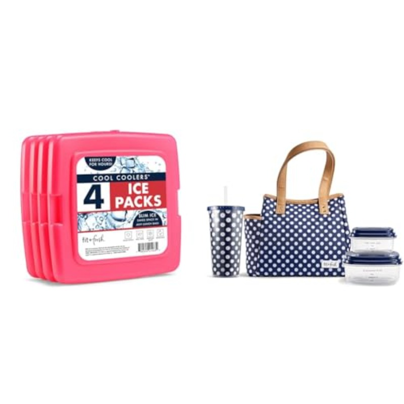 asiueWesterly Insulated Adult Lunch Bag Navy Dot and Cool Coolers 4 Pack Slim Ice Packs Pink Complete Lunch Kit Includes Matching Tumbler and 2 Reusable Food Containers