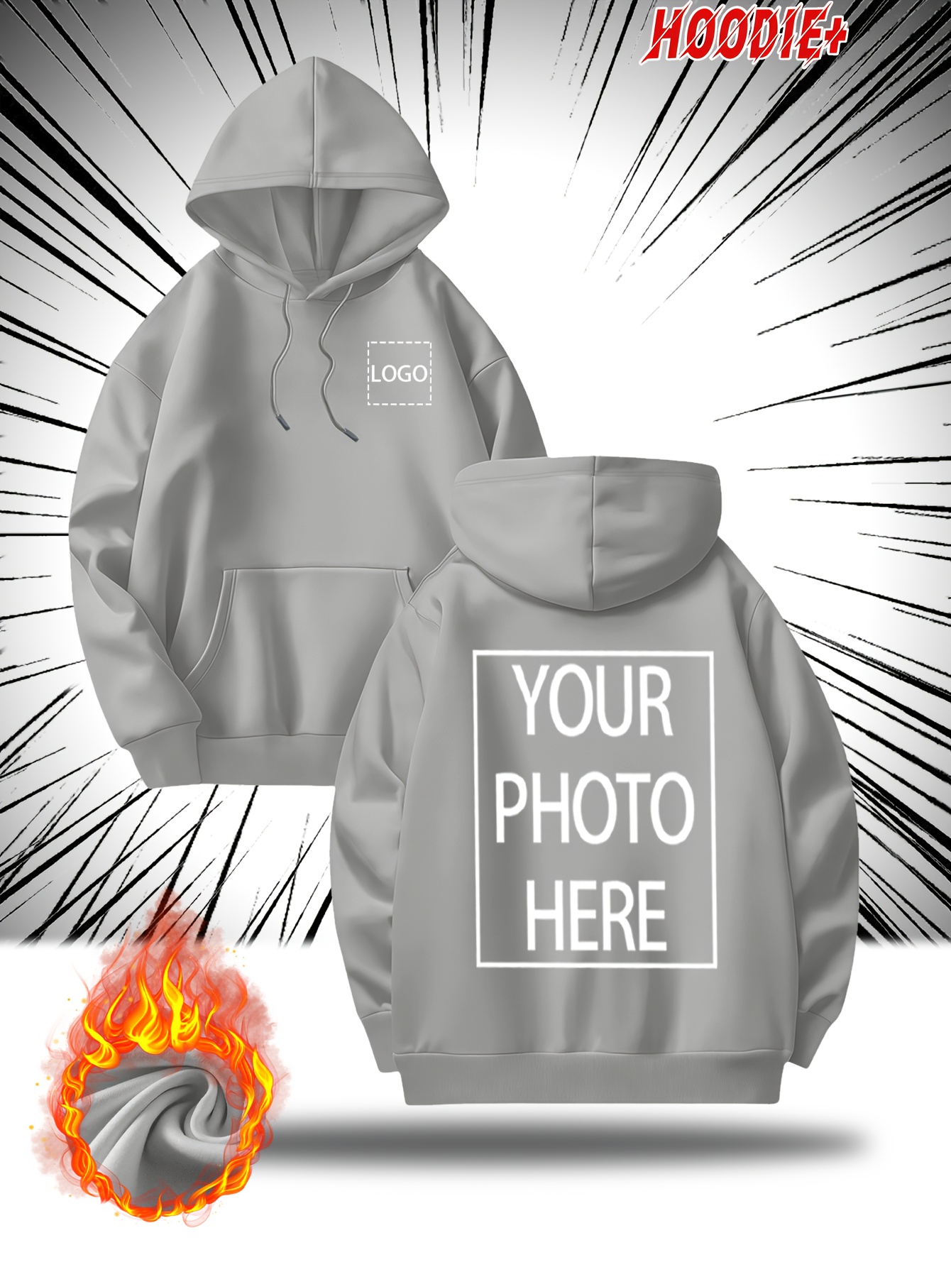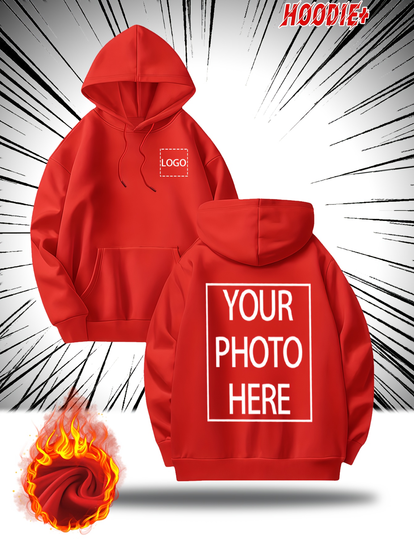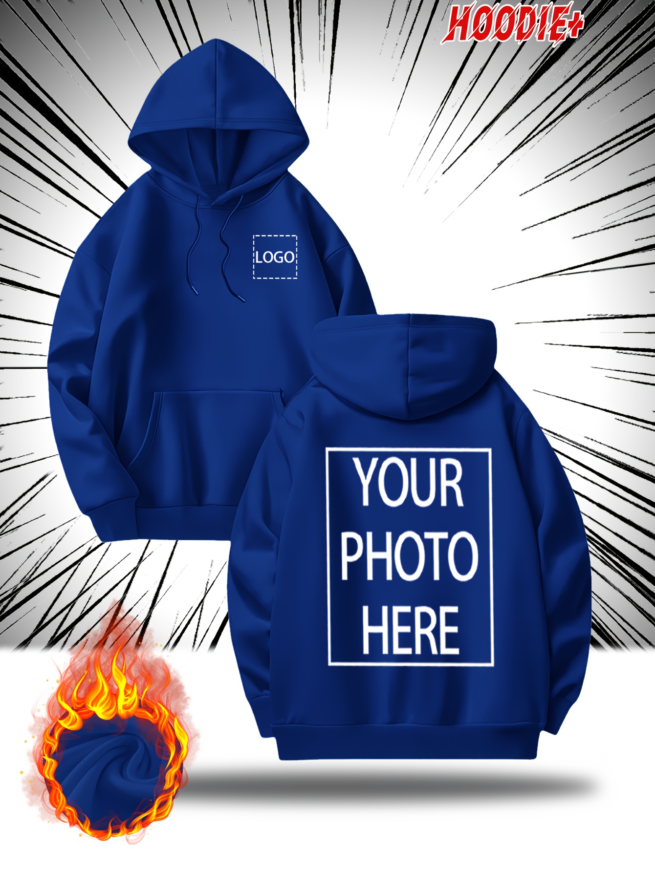 [Personalized Hoodie] Personalized Men's Hoodie - Customizable Photo/Text Front & Back, Navy Blue with White Lettering, All-Season Comfort Fit, Casual Sporty Design for Halloween Christmas Gifts, Durable Casualwear
