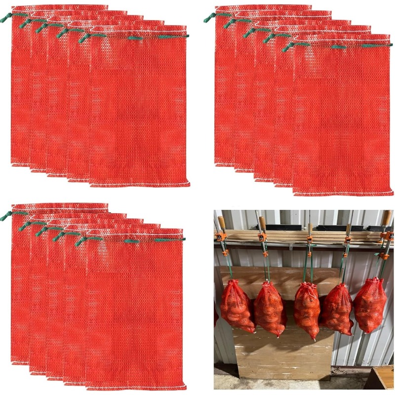 100 Pack 10 lb Heavy-Duty Reusable Mesh Produce Bags with Drawstring Closure - 10"x18" Large Breathable Non-Woven Fabric Storage Bags for Onions, Potatoes, Citrus, Crawfish - Hanging Vegetable Bags for Farm, Kitchen, Restaurant & Home Use - Durable