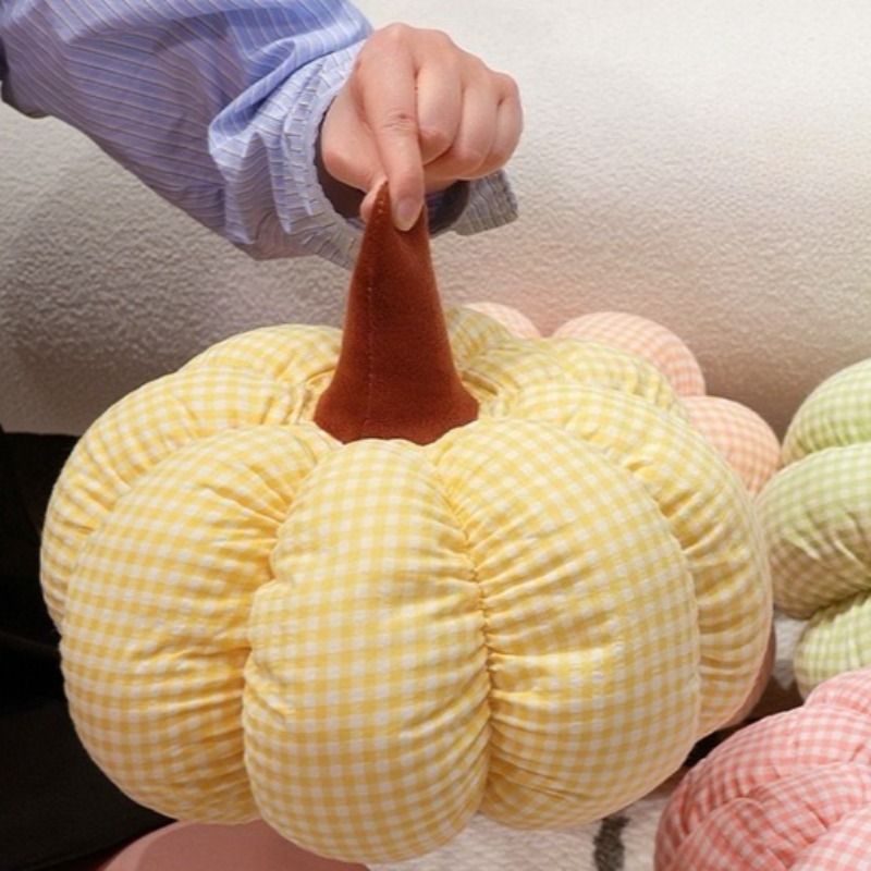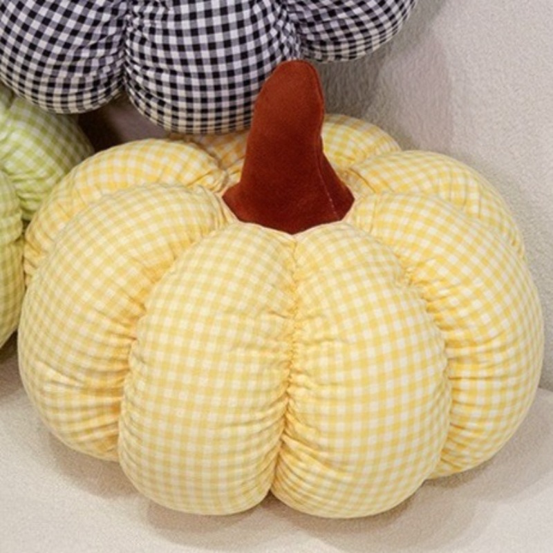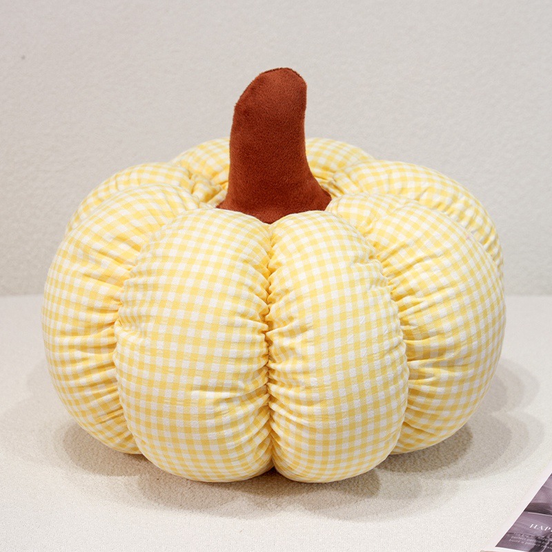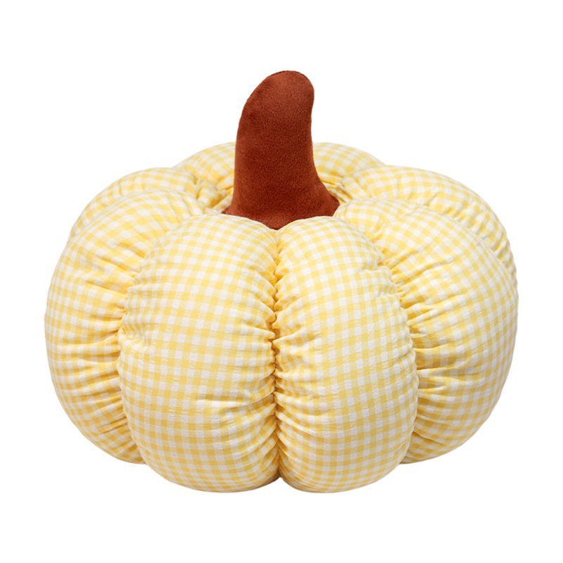 1pc 18cm/ 7.08in Yellow Gingham Pumpkin Pillow | Soft Polyester-Filled,, Gift for Pets, Photography Props, Cuddable Plush Toy, High-Appearance Pet Plush Doll, Suitable for All Breed Sizes