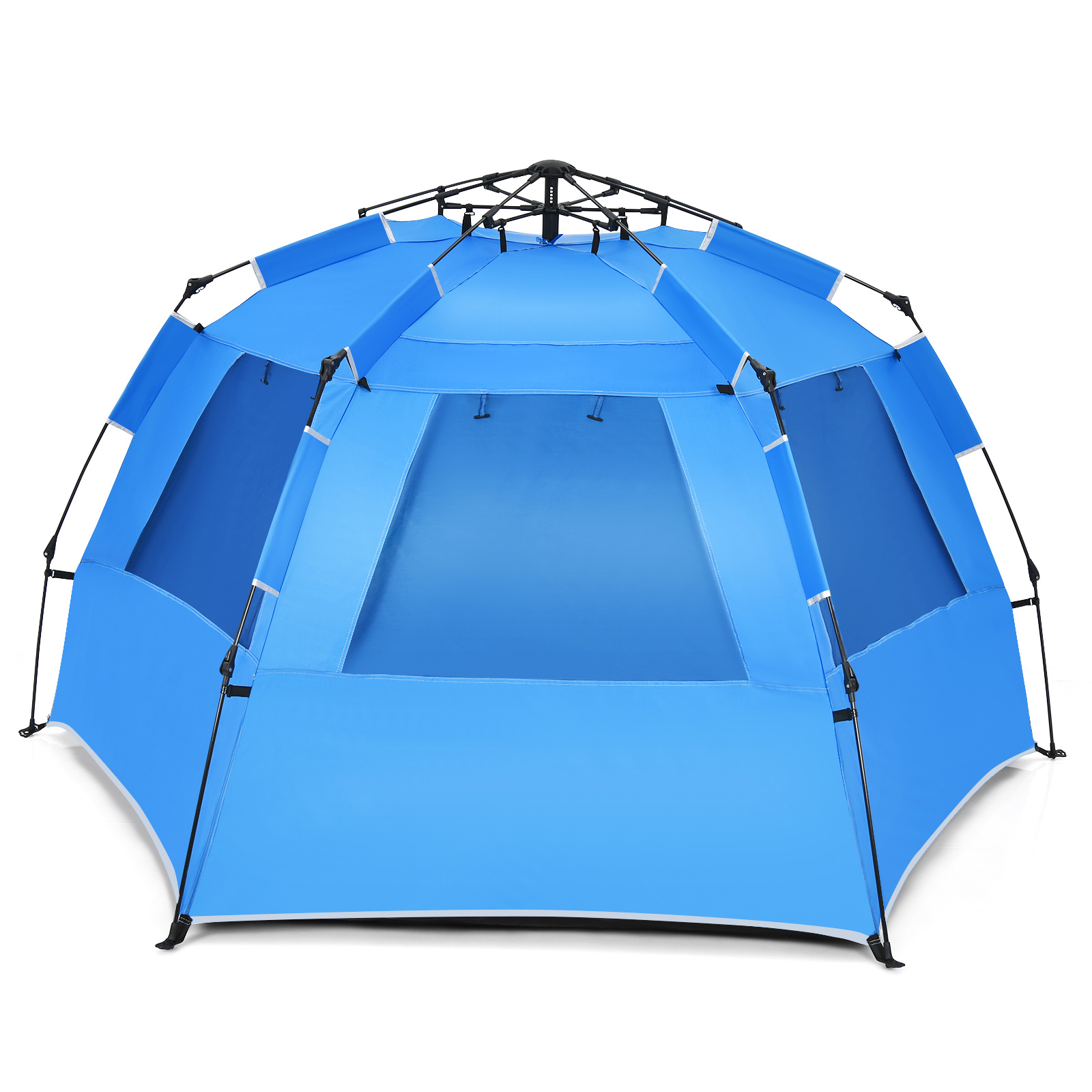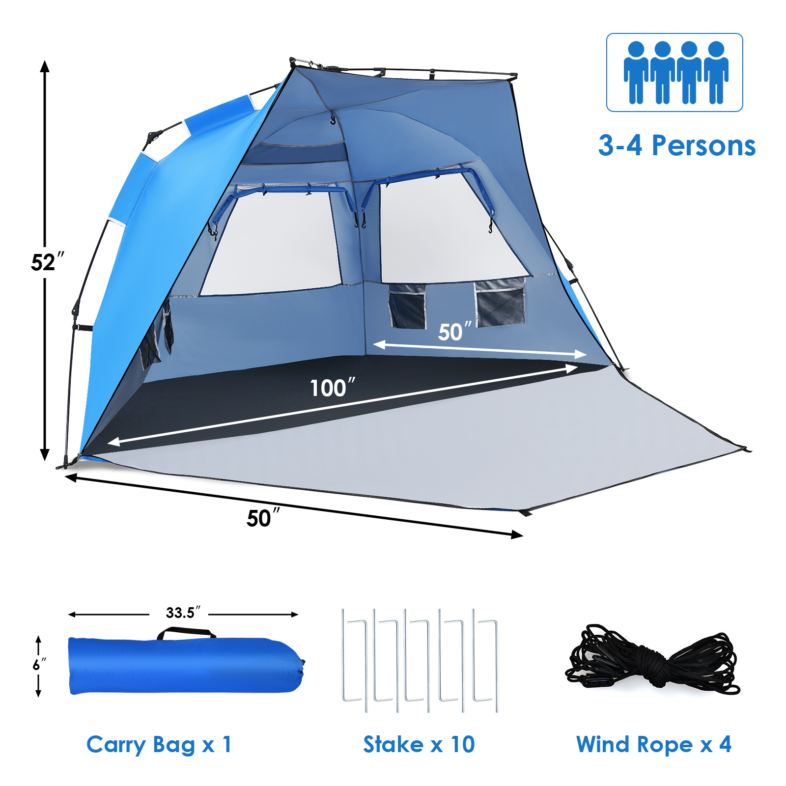 3-4 Person Easy Pop Up Beach Tent, UPF 50+ Portable Sun Shelter W/ 3 Ventilating Windows, Large Zippered Front Porch, 4 Storage Bags, 10 Stakes, Carry Bag