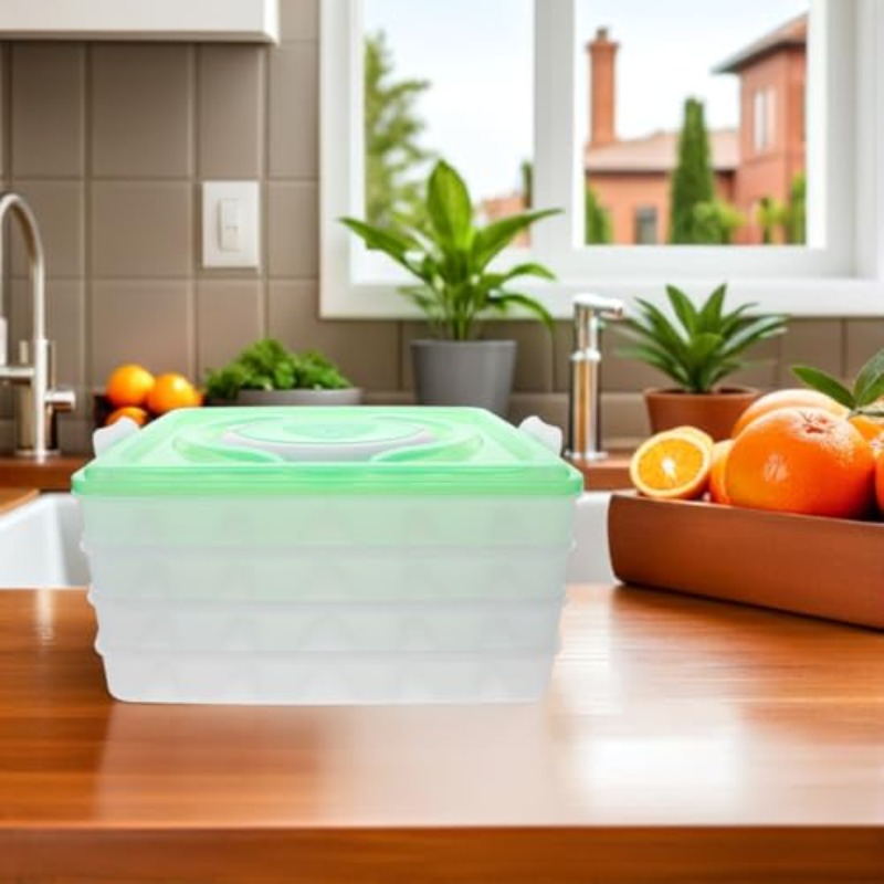 4-Layer Food Storage Containers with Lids | Dumpling Storage Box for Freezer, Portable Stackable Organizer with 18 Compartments Per Tray, BPA-Free, Microwave Safe