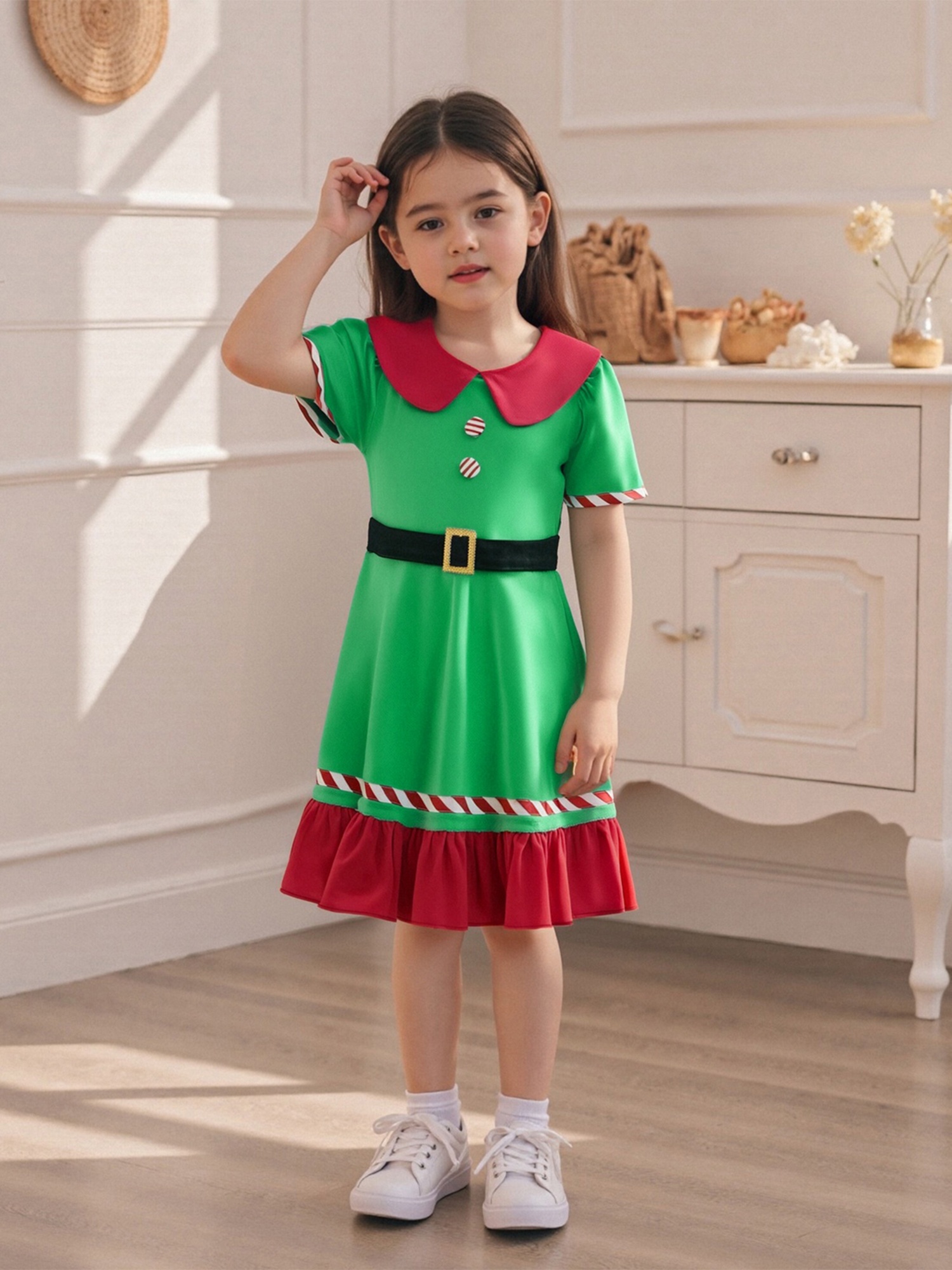 A Festive Dress for Young Featuring a Santa Claus Design, Perfect for Outdoor Fun. This Short-Sleeved A-Line Dress Is Soft, Breathable, And Ideal for Everyday Wear, As Well As for Thanksgiving, Halloween, And Christmas Gifts, Suitable for to 6 Years