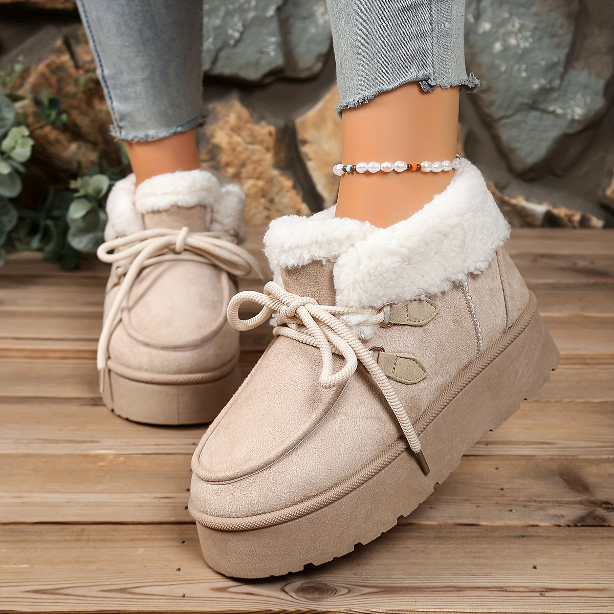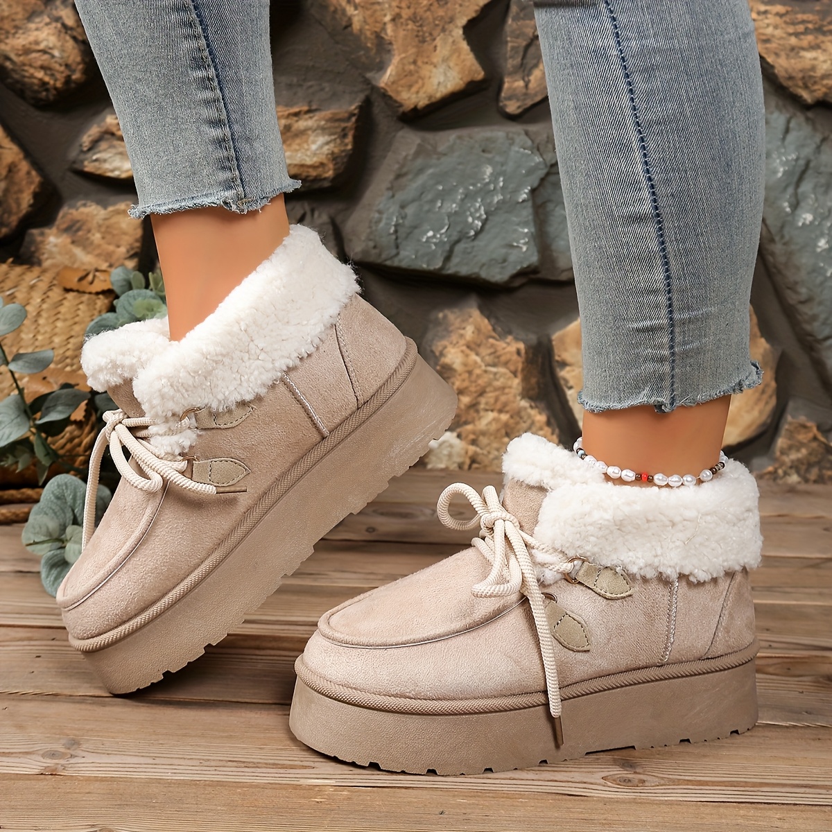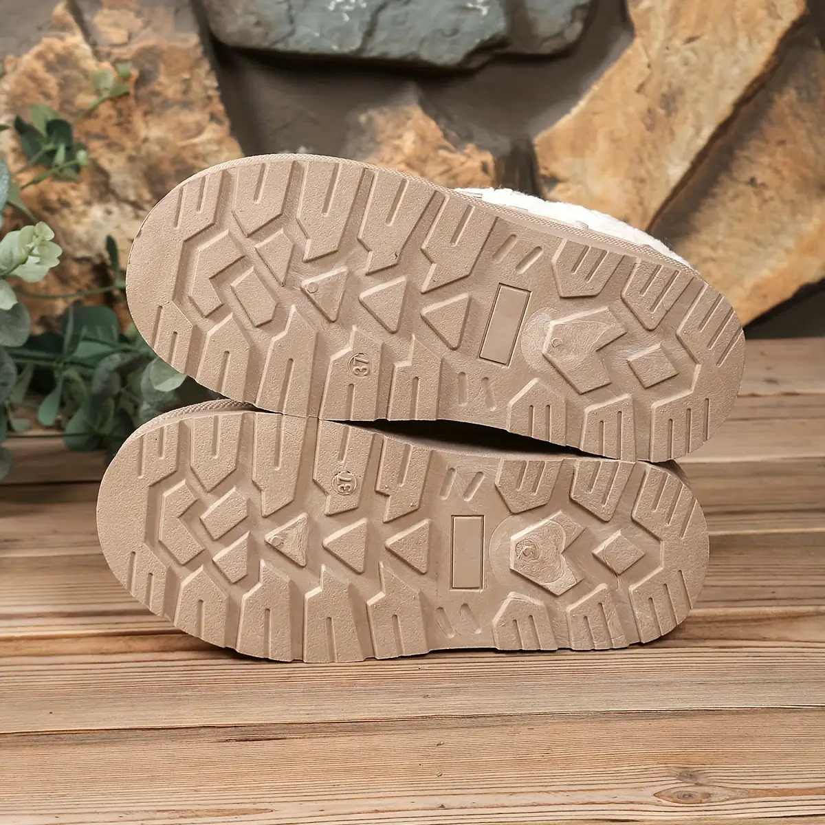 Beige Winter Ankle Boots with Fleece Lining, Featuring faux fur And Tassel Embellishments. These Short, Round-Toe Boots Have a Soft Sole And PU Outsole, Women Shoes