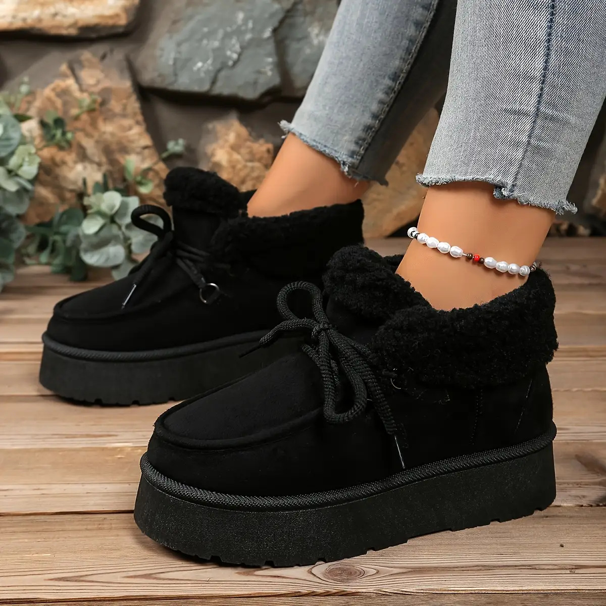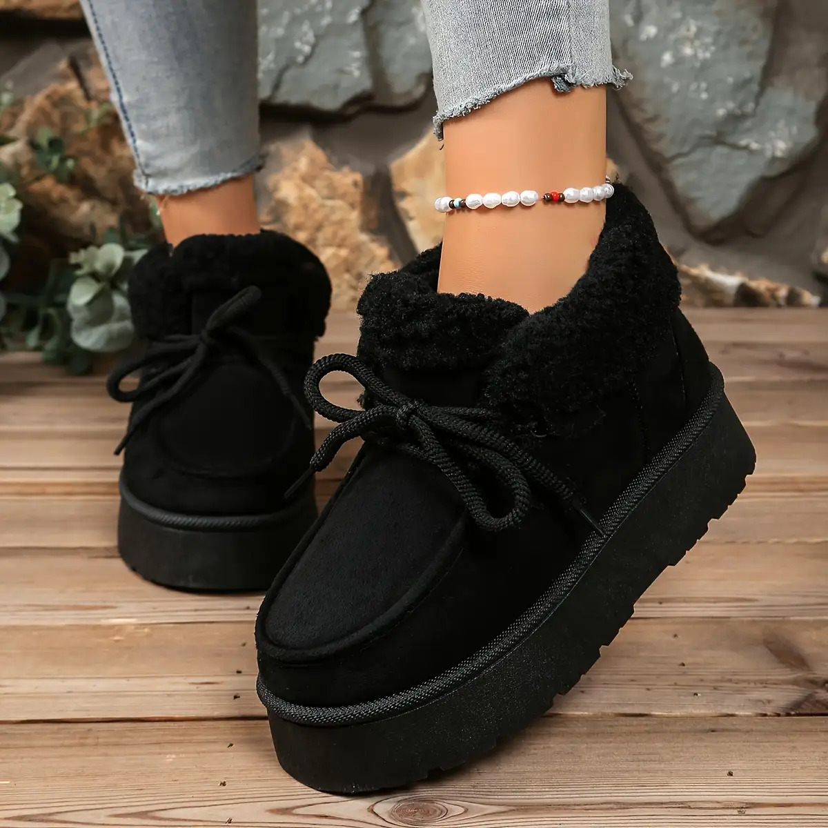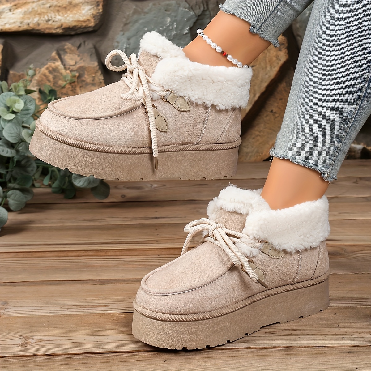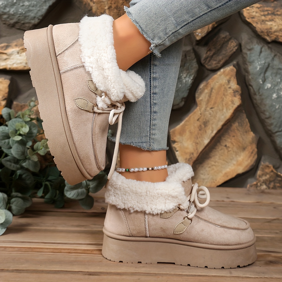 Beige Winter Ankle Boots with Fleece Lining, Featuring faux fur And Tassel Embellishments. These Short, Round-Toe Boots Have a Soft Sole And PU Outsole, Women Shoes