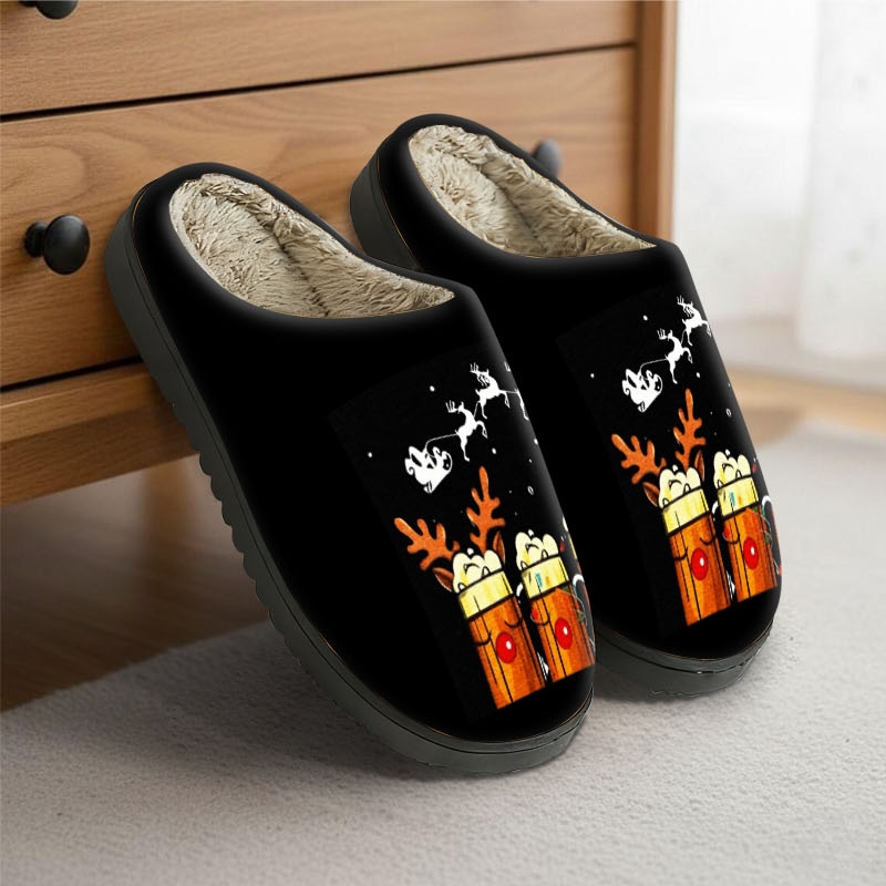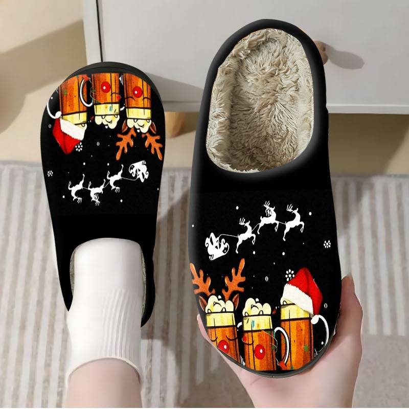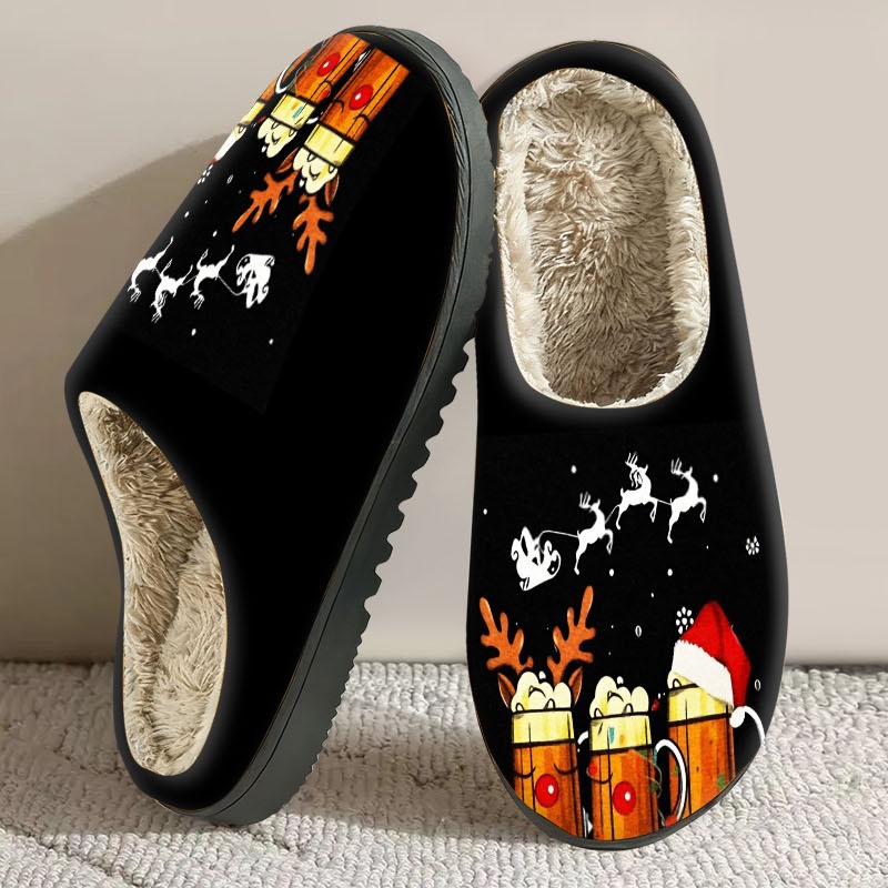 Cozy Fleece-Lined Slippers Featuring a Christmas Beer Mug Design, Perfect for Festive Occasions. These Comfortable, Non-Slip Slippers Are Soft And Breathable, Making Them a Great Option for Family Wear. Ideal for Christmas And Birthday Presents.