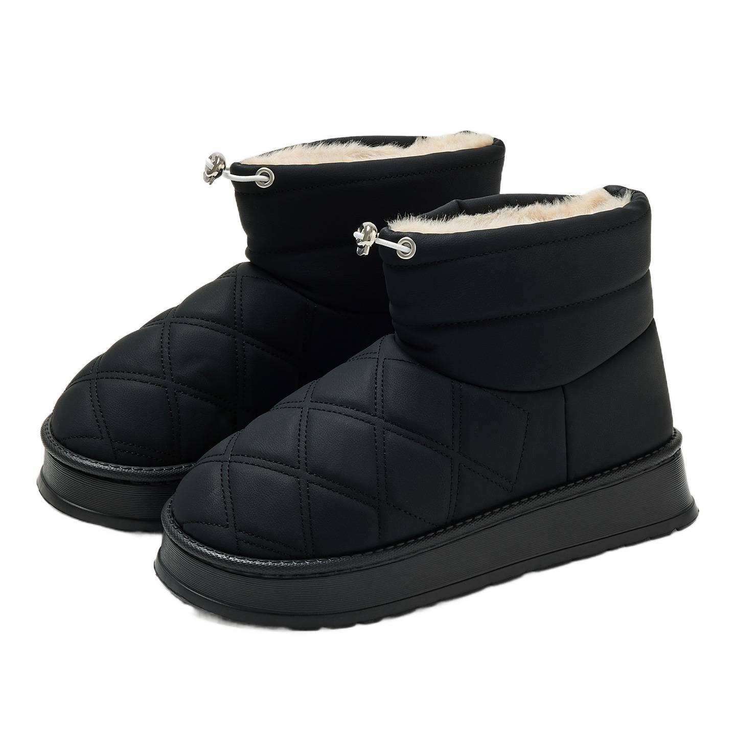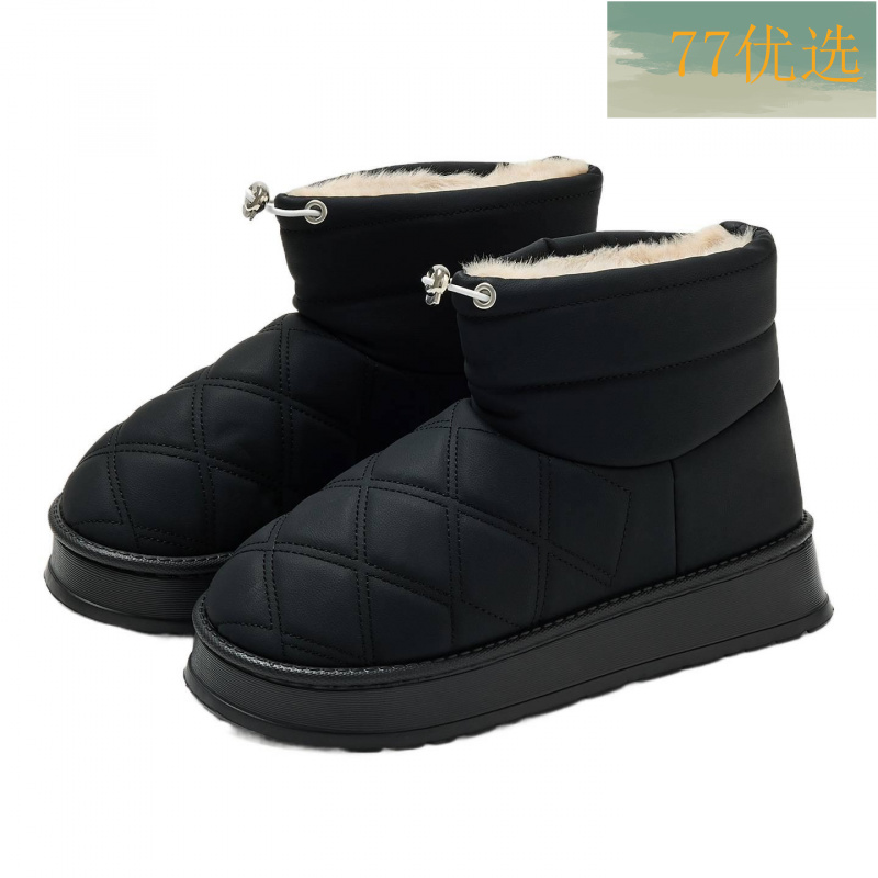 High-top Slippers Women Winter Indoor Home Use | Plush Warm Thickened Women'S PU Shoes Winter, Solid Color, Fabric Upper and Inner, Sole, Women Shoes