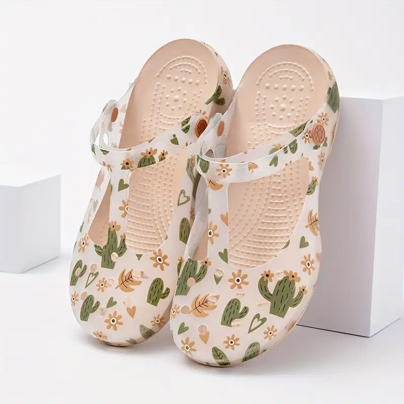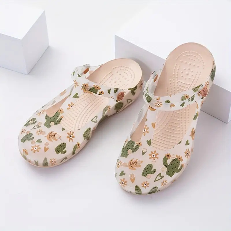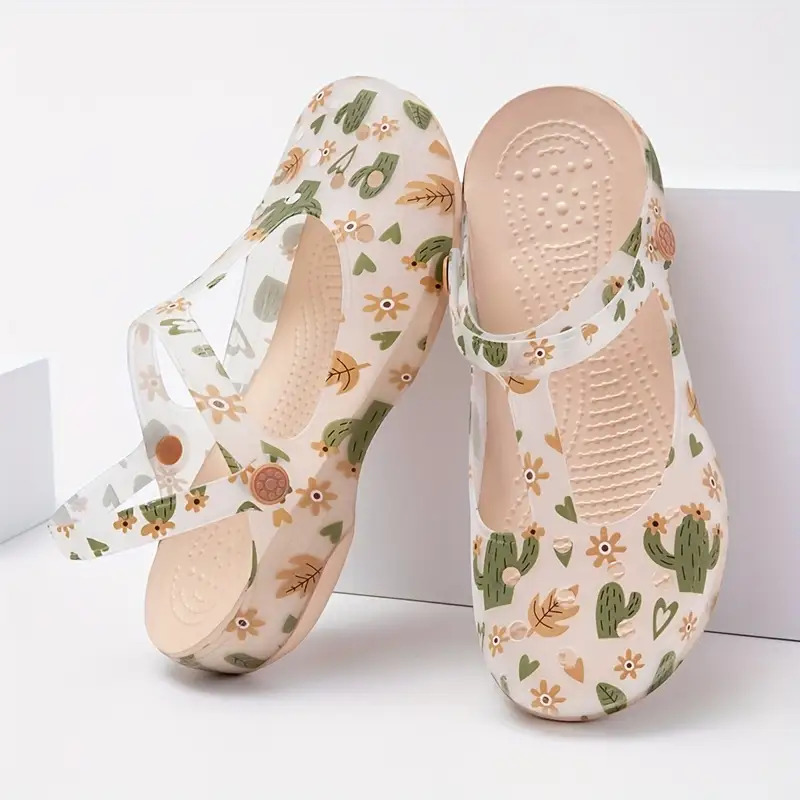 Ladies' Summer Floral EVA Footwear - Slip-Resistant Platform Beach Footwear, Soft Sole, Round Toe with Cushioned Insole, Ideal for Casual Outings, Walking, Poolside Relaxation, Decorative Floral Pattern, Non-Slip Design, Women Shoes