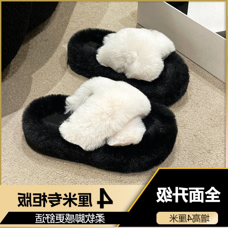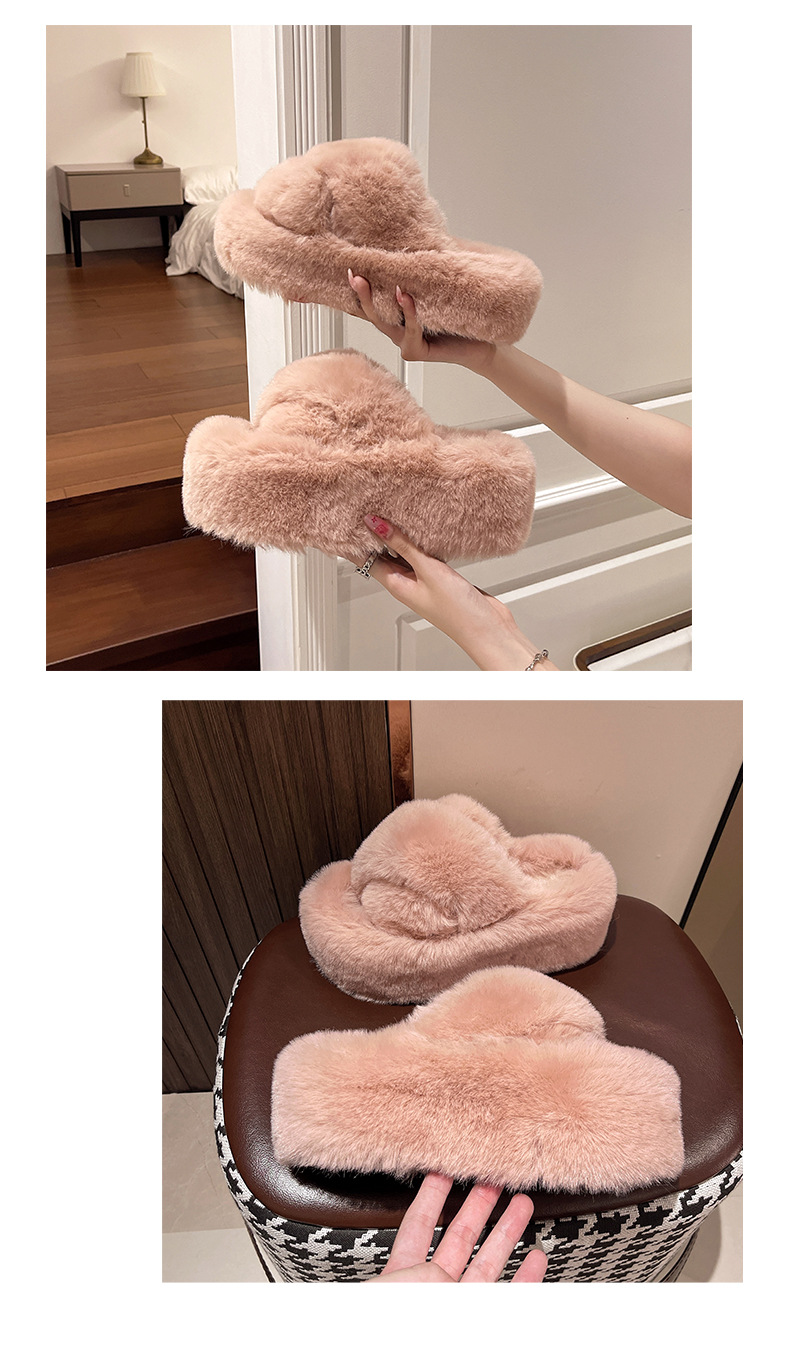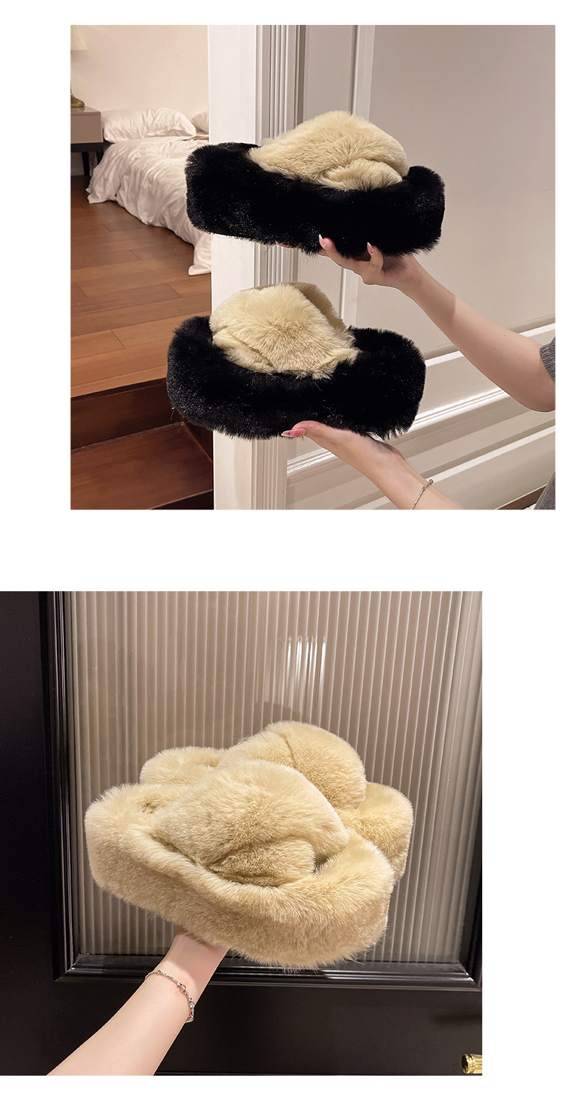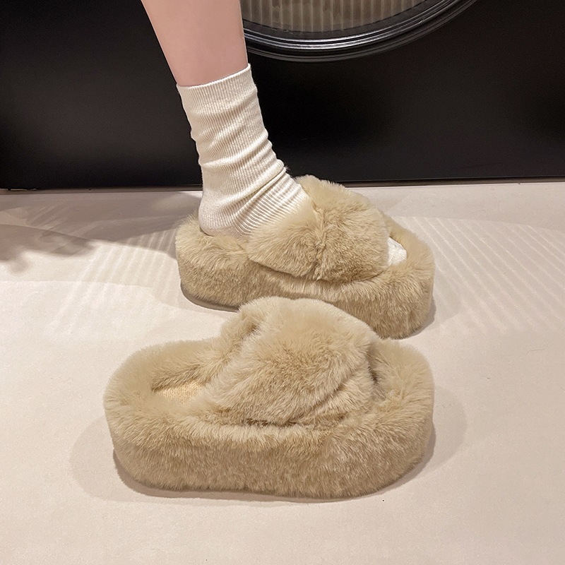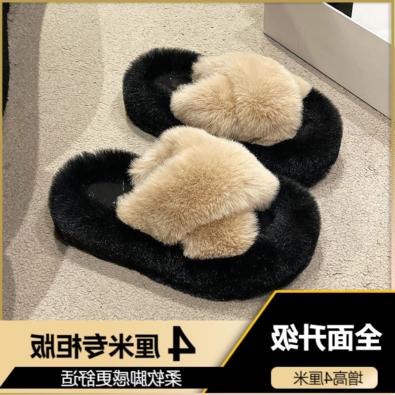 Luxury Furry Slippers for Women with High Heels, Suitable for Outdoor Use, Featuring a New Design for Autumn And Winter, Ideal for Home Wear, with a Thick Sole That Adds Height., Women Shoes