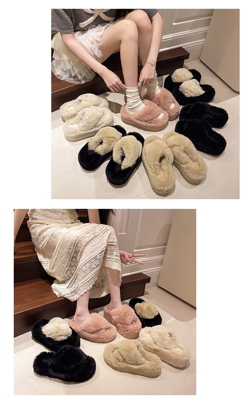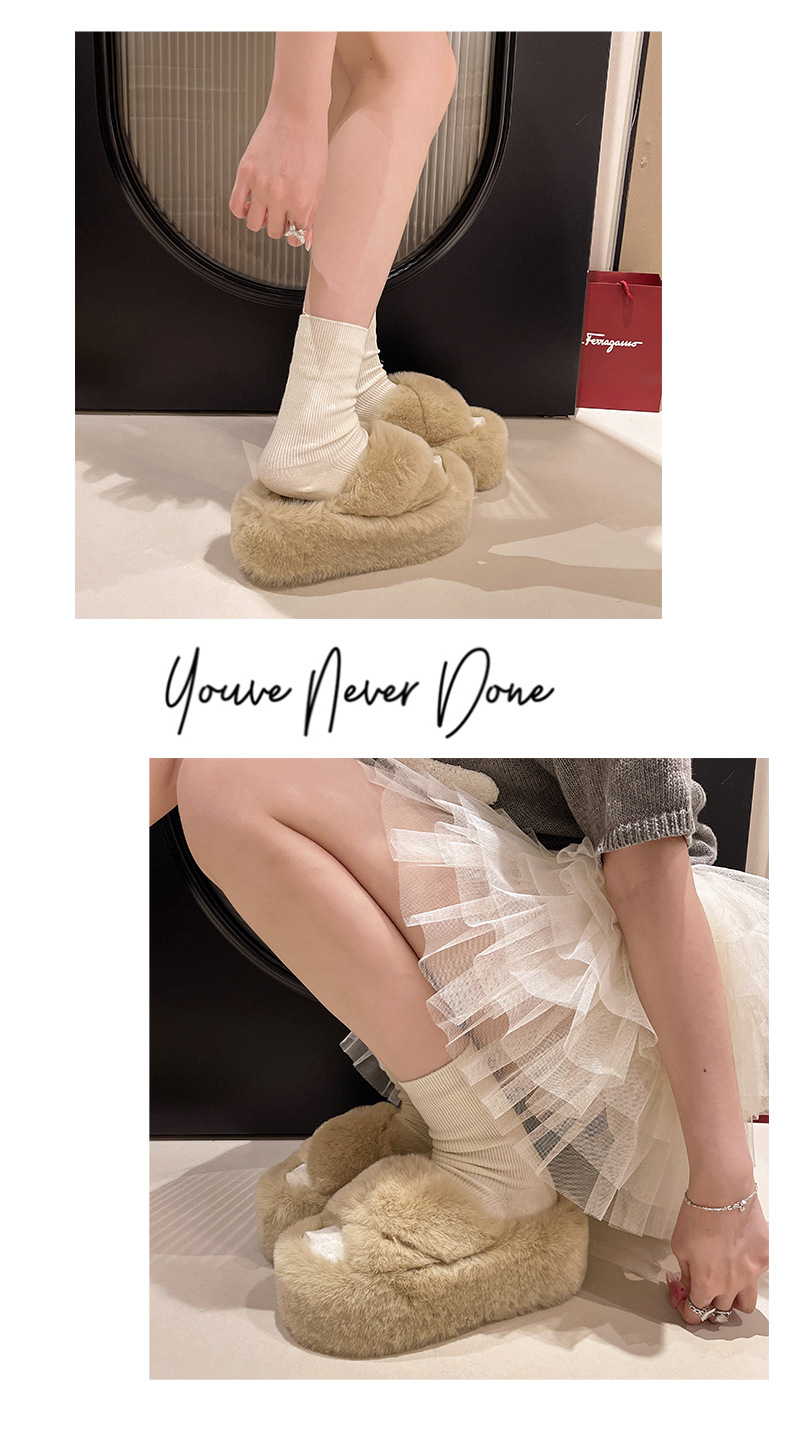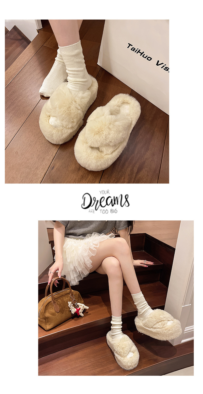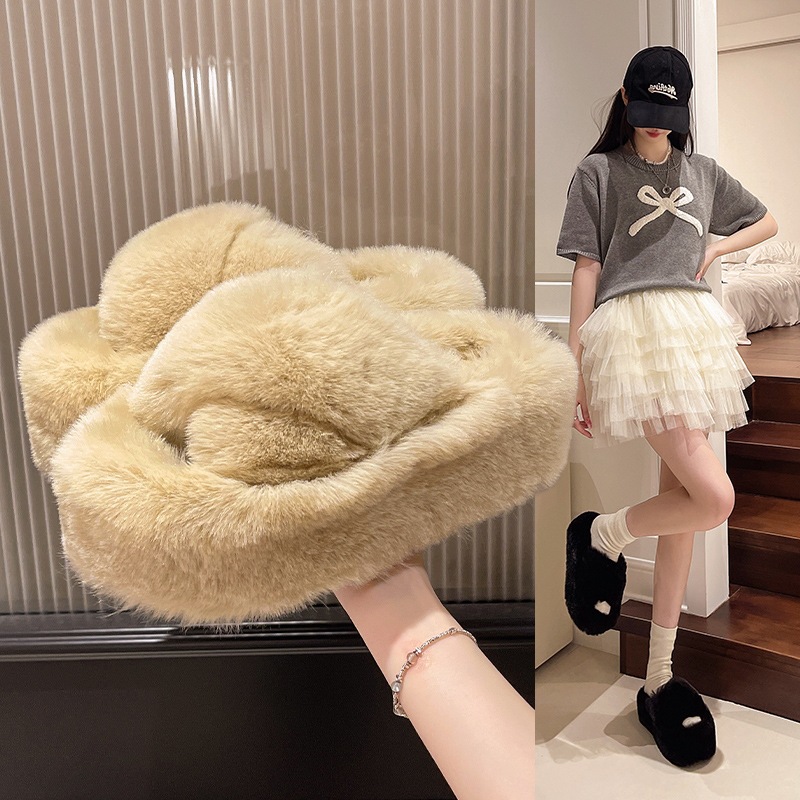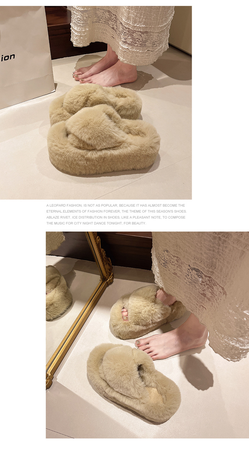 Luxury Furry Slippers for Women with High Heels, Suitable for Outdoor Use, Featuring a New Design for Autumn And Winter, Ideal for Home Wear, with a Thick Sole That Adds Height., Women Shoes
