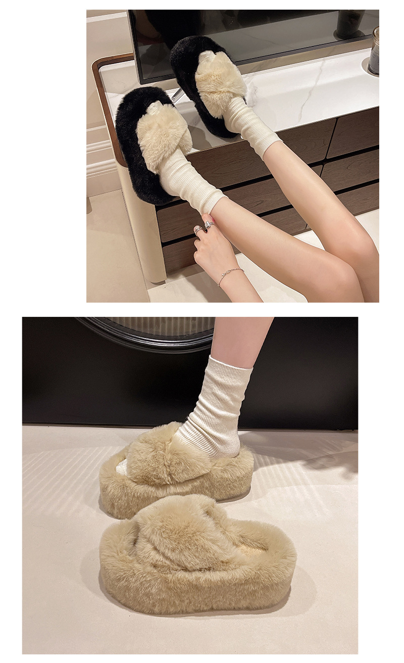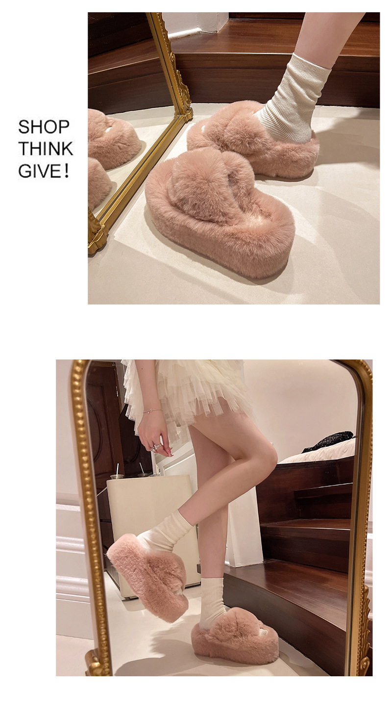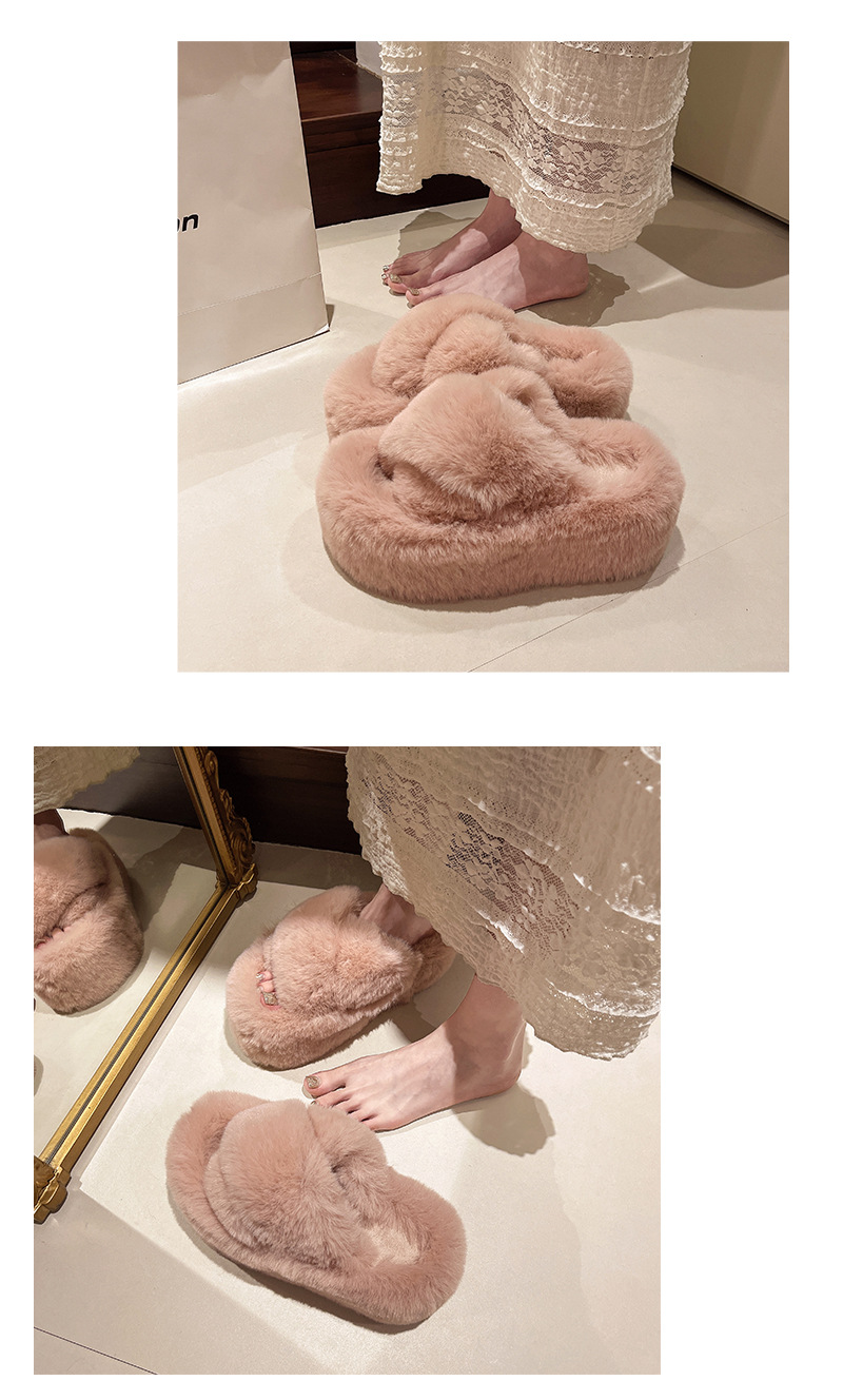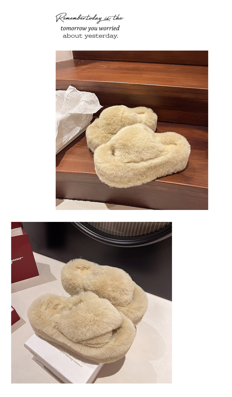Luxury Furry Slippers for Women with High Heels, Suitable for Outdoor Use, Featuring a New Design for Autumn And Winter, Ideal for Home Wear, with a Thick Sole That Adds Height., Women Shoes
