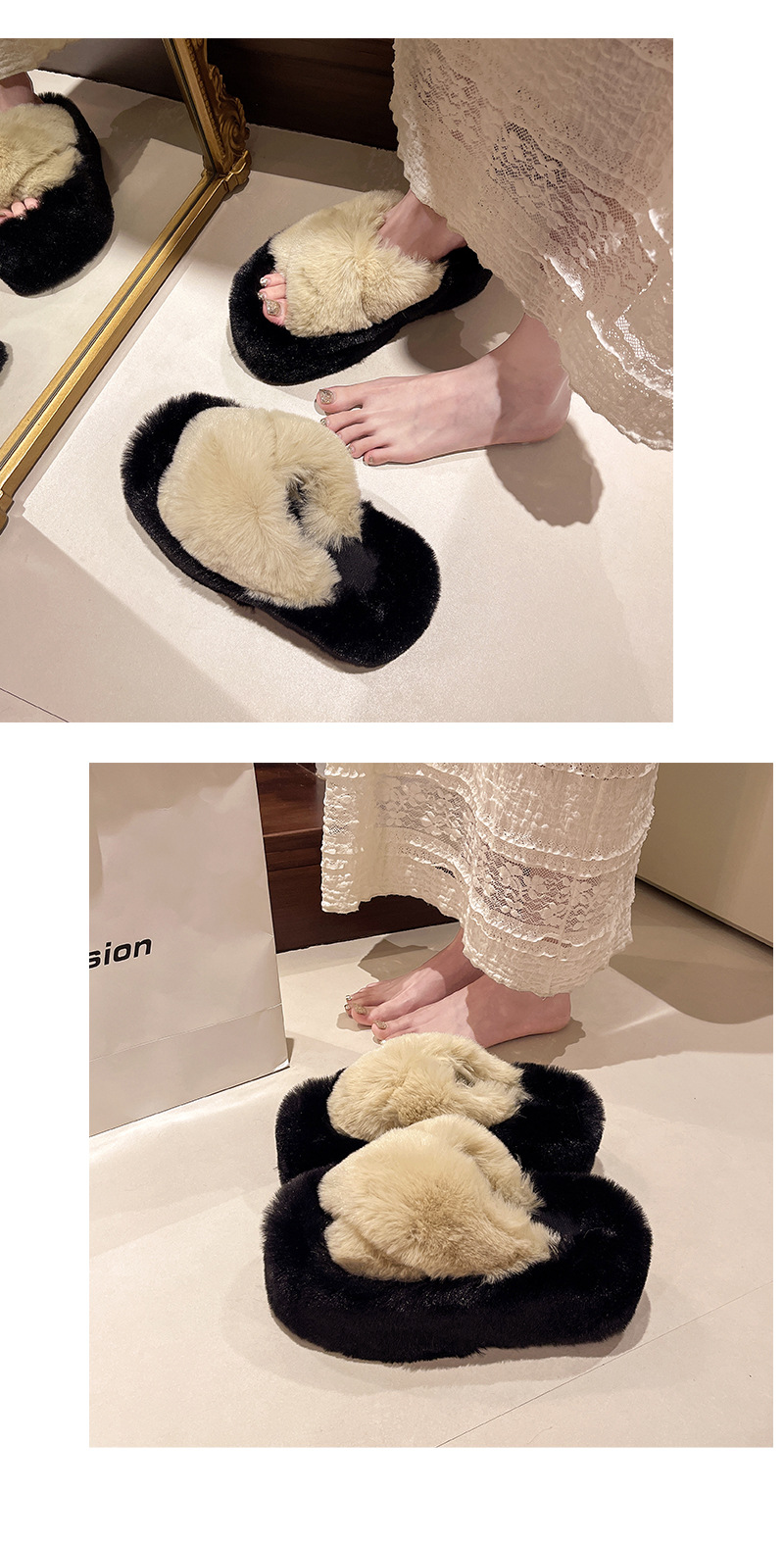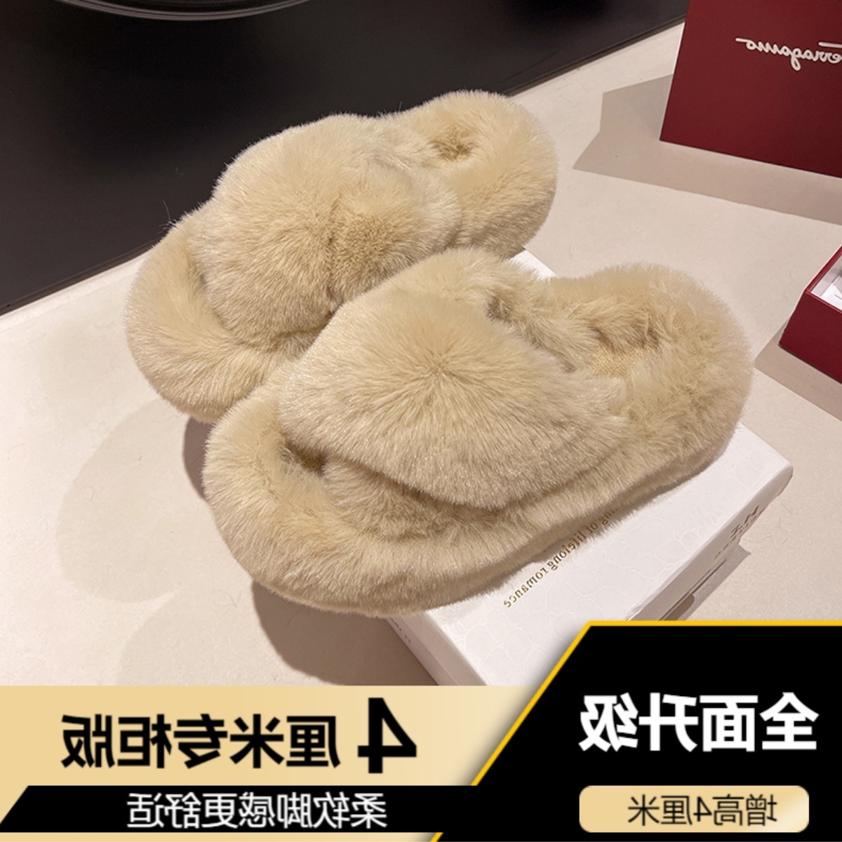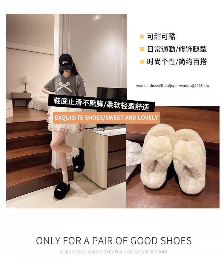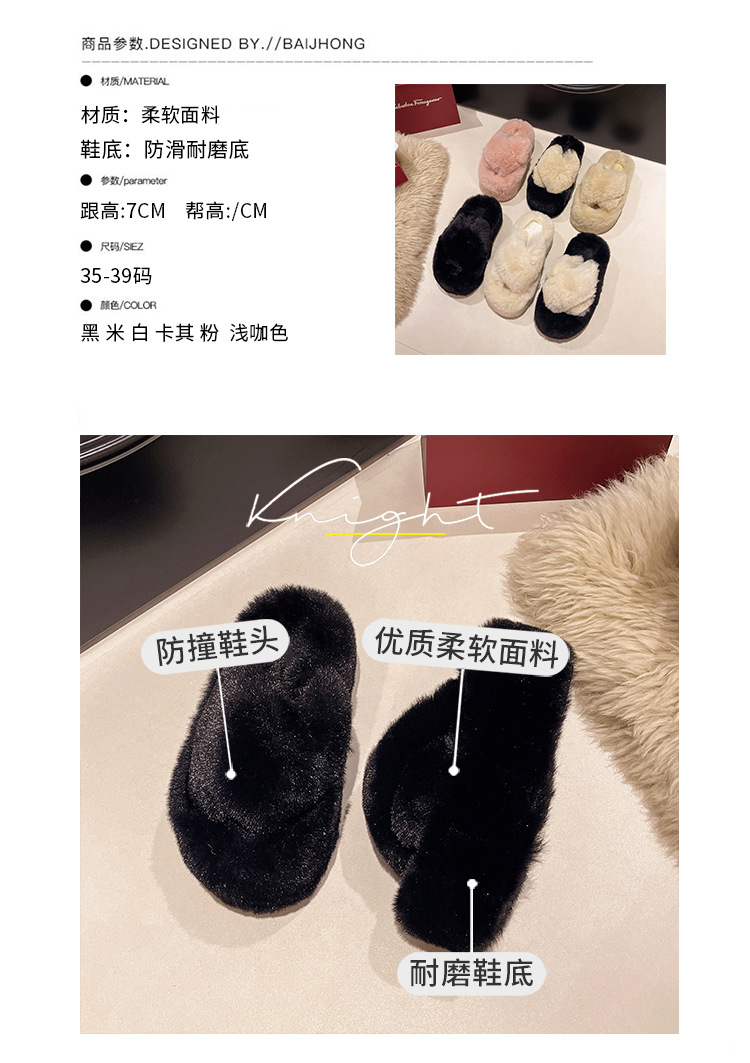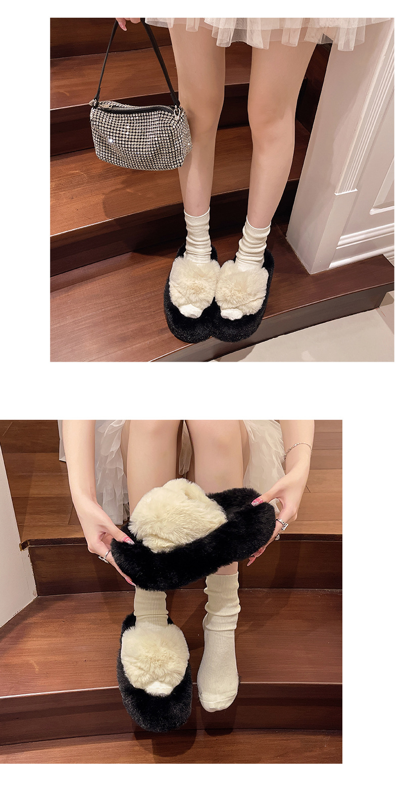 Luxury Furry Slippers for Women with High Heels, Suitable for Outdoor Use, Featuring a New Design for Autumn And Winter, Ideal for Home Wear, with a Thick Sole That Adds Height., Women Shoes