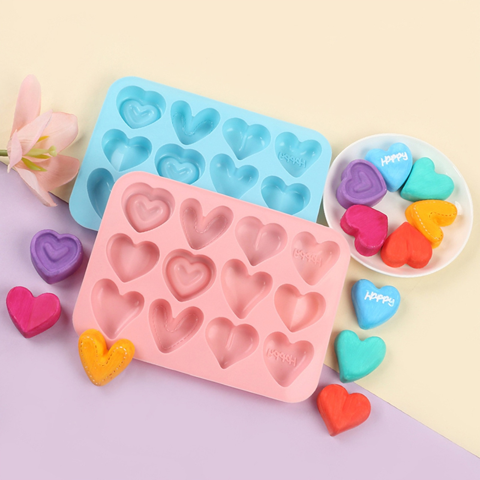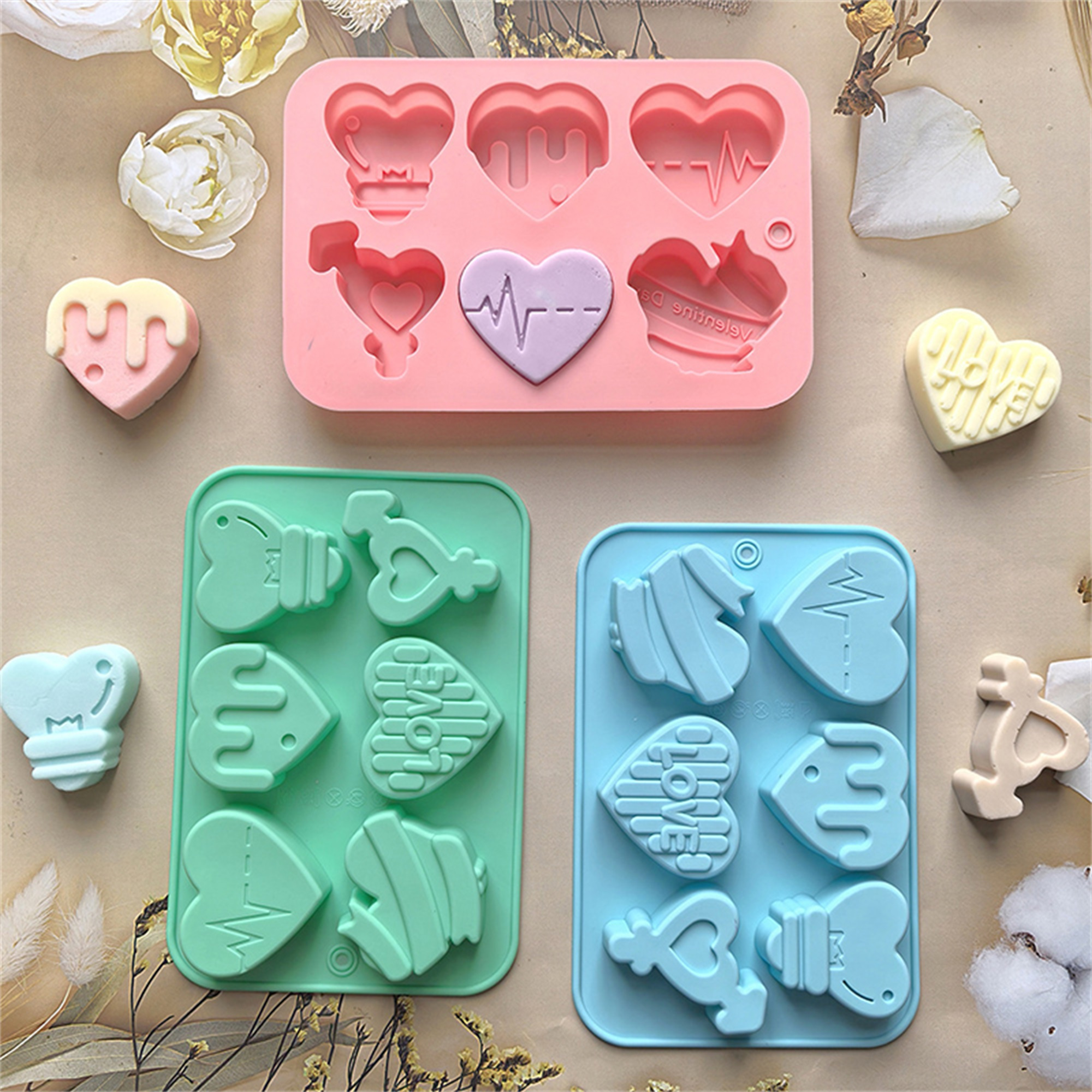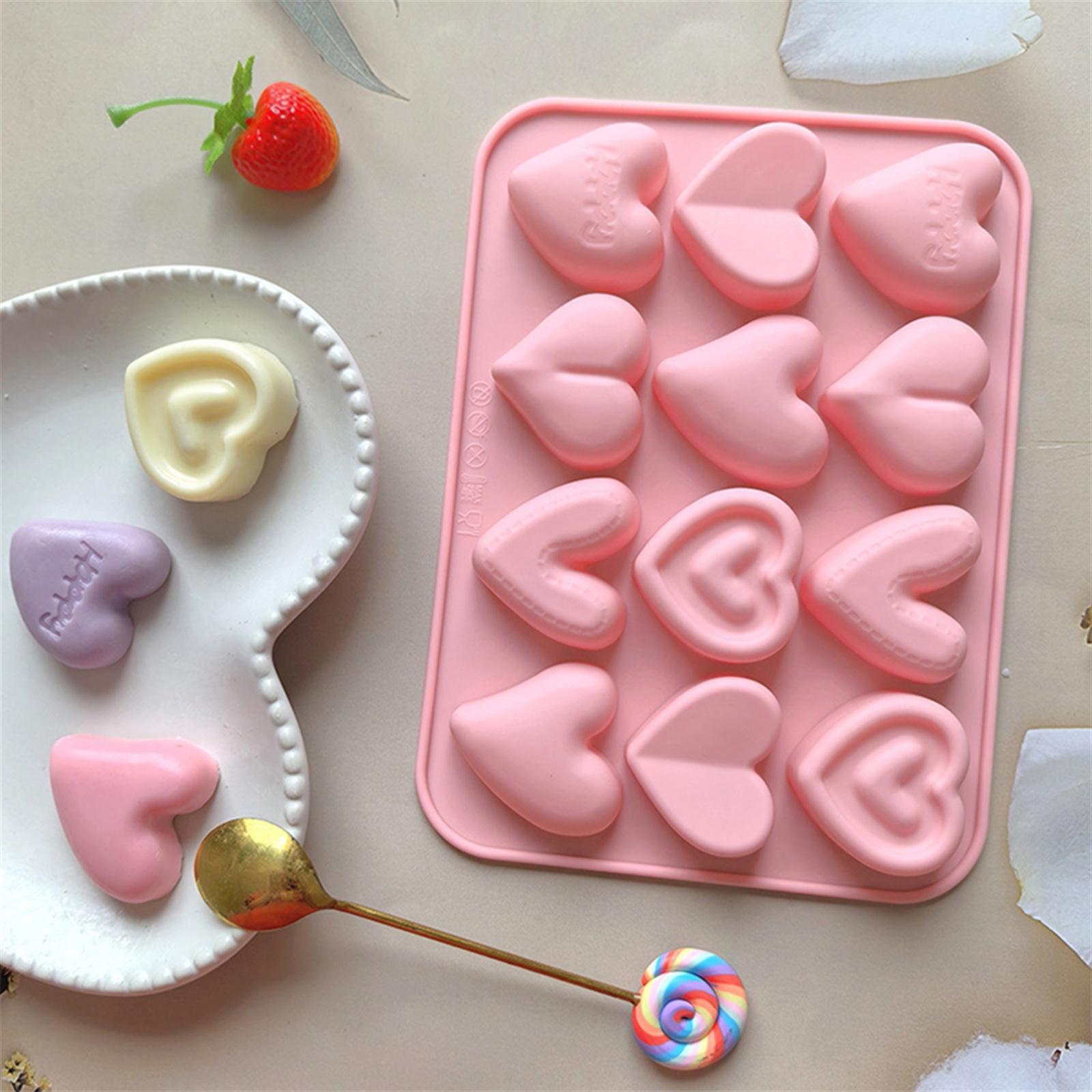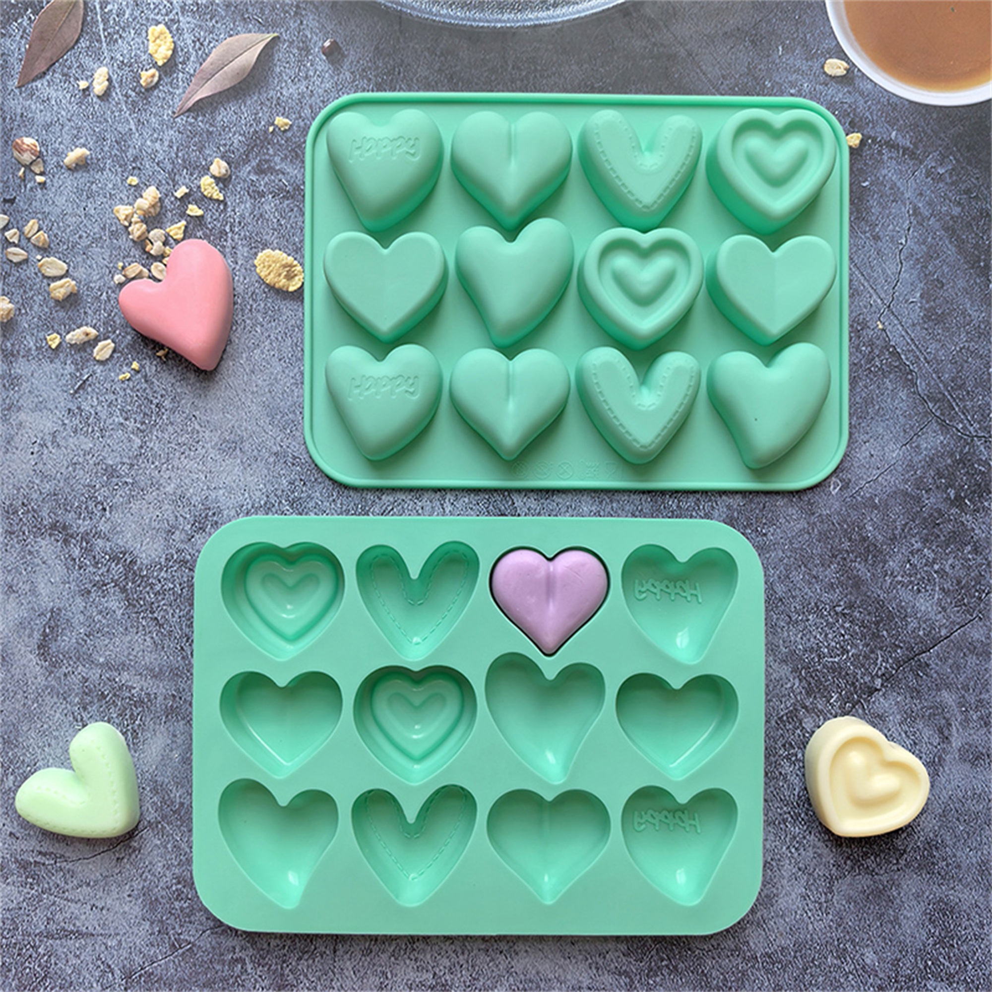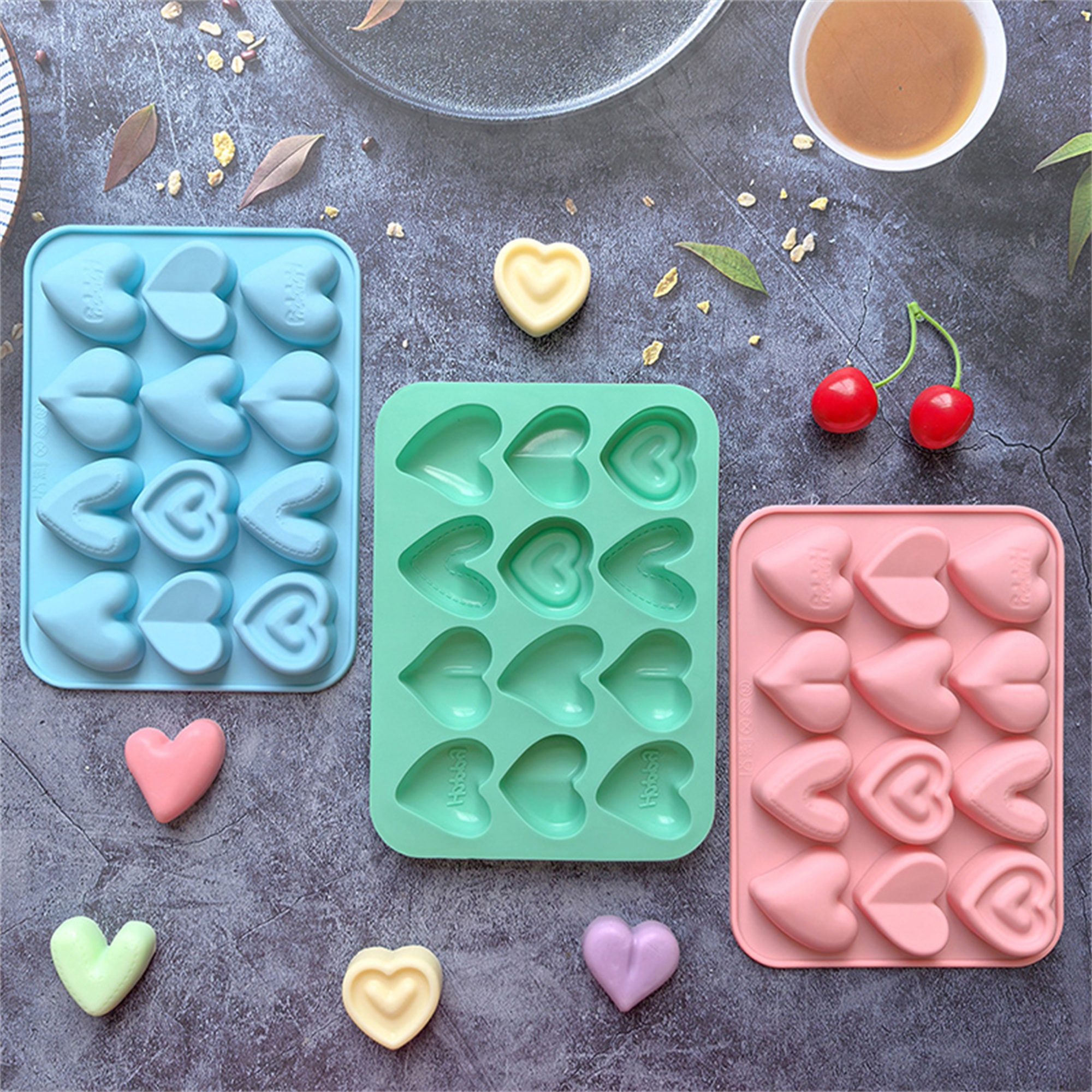 Valentine Silicone Molds with 12 Positions Heart Shaped Non-Stick Holiday Love Molds Chocolate Molds